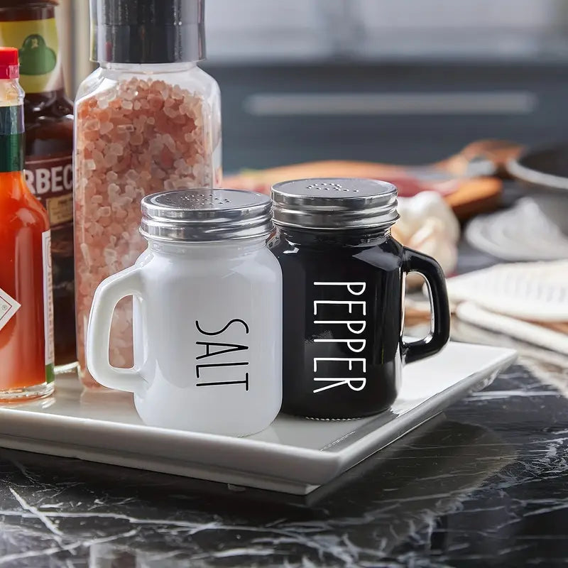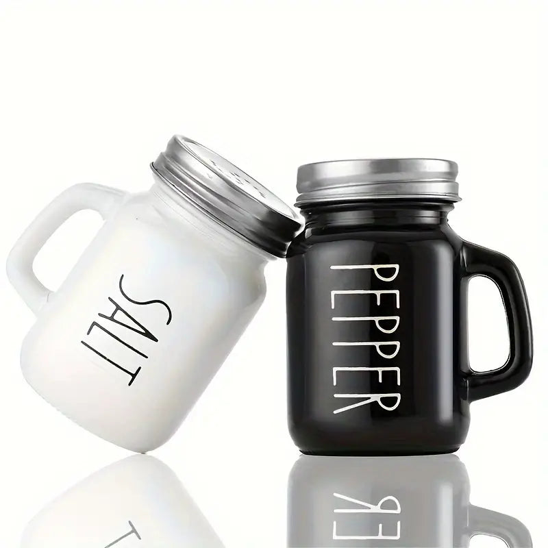 Red Glass Salt and Pepper Shaker Set with Handles