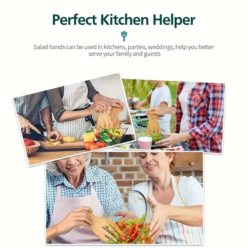 2pcs Bamboo Salad Servers – Wooden Claw-Style Mixing Forks