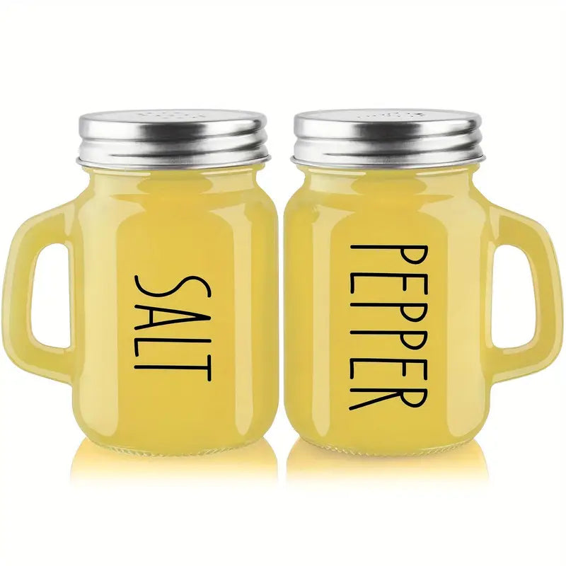 Add charm to your kitchen with this red glass salt and pepper shaker set, complete with ergonomic side handles and stainless steel screw-top lids. Designed for daily use and easy refilling, these 4.4oz jars are both stylish and practical. A bold, farmhouse-inspired accent for your countertop or dining table.